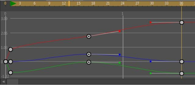 タイムラインのグラフモードは、対象のキーフレームをダブルクリックすると編集モードに変わります。