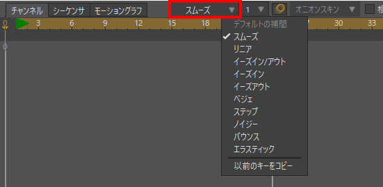 タイムラインに追加するキーフレームの補間方法を変更するには、