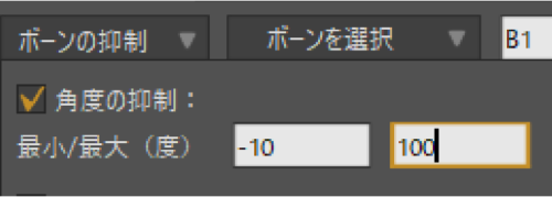 ボーンを回転させる最大角度と最小角度の範囲を入力します。