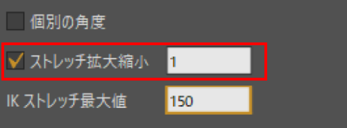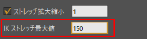 [IKストレッチ最大値]は、ボーンが伸びる最大量を制限する機能です。