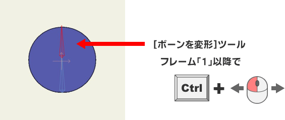 [ボーンを変形]ツールは、Ctrl+左右にドラッグすると、ボーンの長さを変えられます。