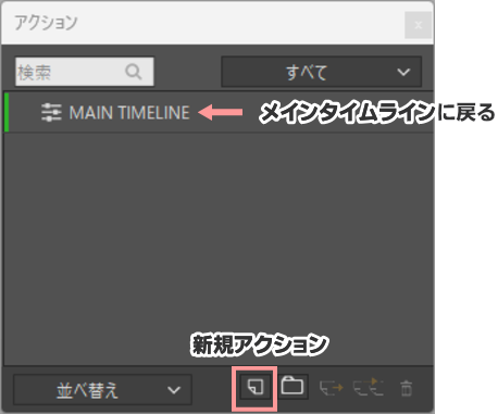 - [MAIN TIMELINE]をダブルクリックして、通常モードに戻る