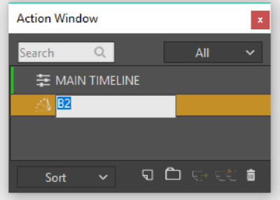 - タイムラインの表示が変わり、アクションの編集状態になります。