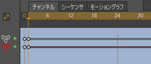 このキーフレームは「アクション」に登録される内容で、実際のアニメーションとしての動作ではありません。