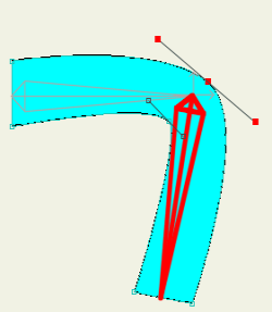[ボーンの強度]を調整した後に、何もせずにボーンB2を回転すると、長方形の中央付近が変形してしまうことでしょう。(下図A)