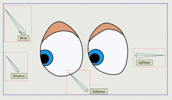 下図は、Mohoユーザーズマニュアルの画像をお借りしています。「目」の周りに4つのボーンが配置されてます。(赤点枠)