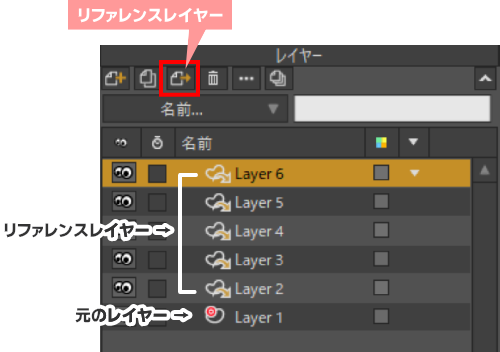 リファレンスレイヤーは、一見するとレイヤーの複製と同じですが、元のレイヤーとリンクしていることが特徴です。
